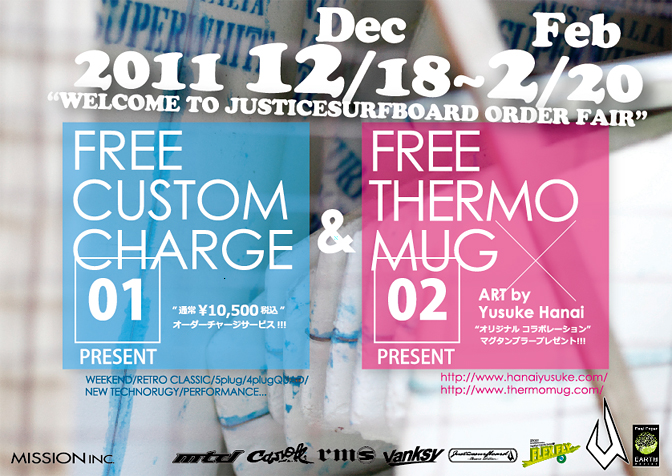 毎年好評頂いてます!!! 恒例の「ジャスティスサーフボード オーダーフェアー」!!!